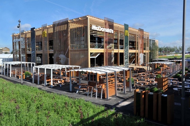 Cửa hàng McDonald’s lớn nhất thế giới, London, AnhCửa hàng này được xây dựng để phục vụ thế vận hội Olympic diễn ra tại London năm 2012, và chỉ mở cửa trong 6 tuần. Gần 75% tòa nhà đã được tái chế hoặc sử dụng lại tại những địa điểm khác của McDonald’s. Thậm chí, dầu chiên đã qua sử dụng được biến thành nhiên liệu sinh học cho xe tải giao hàng của McDonal’s tại Anh. |