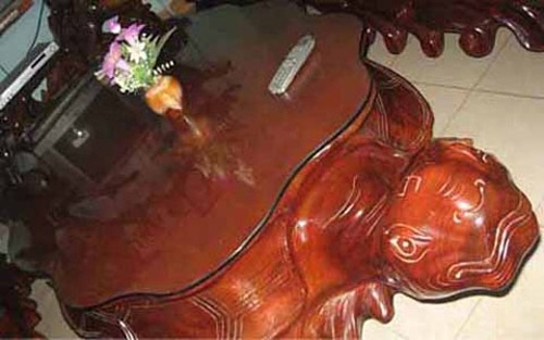 Bộ bàn ghế gồm đầy đủ hình dáng long, lân, quy, phụng, được làm từ gốc cây cẩm lai (chi gỗ quý còn có tên khác là sưa, trắc, là loài quý hiếm, thể hiện màu sắc lạ kỳ tạo nên bởi các vân thớ) thuộc sở hữu của một đại gia ở Nghệ An... Theo vị chủ nhân thì gốc rễ gỗ quý khổng lồ để làm bộ bàn ghế này được mua về từ Campuchia vào thập niên 90 của thế kỷ trước. Ước tính, lượng gỗ để tạo ra những sản phẩm độc đáo này lên tới 7 khối.