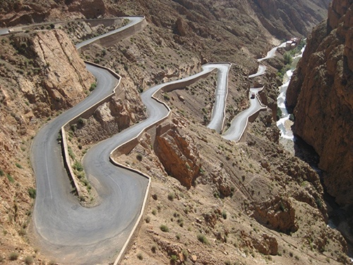 Con đường vượt núi Atlas được xây dựng giữa hai thành phố Marrakech và Ouarazate ở Marốc, với vô số khúc cua, rẽ - là thử thách đối với cả những tài xế giỏi nhất. Con đường dài 188 km này mất 4 giờ để hoàn thành, tuy nhiên khung cảnh hùng vĩ phía dưới rất đáng để ngắm nhìn và là phần thưởng xứng đáng sau một chặng đường gian khổ.