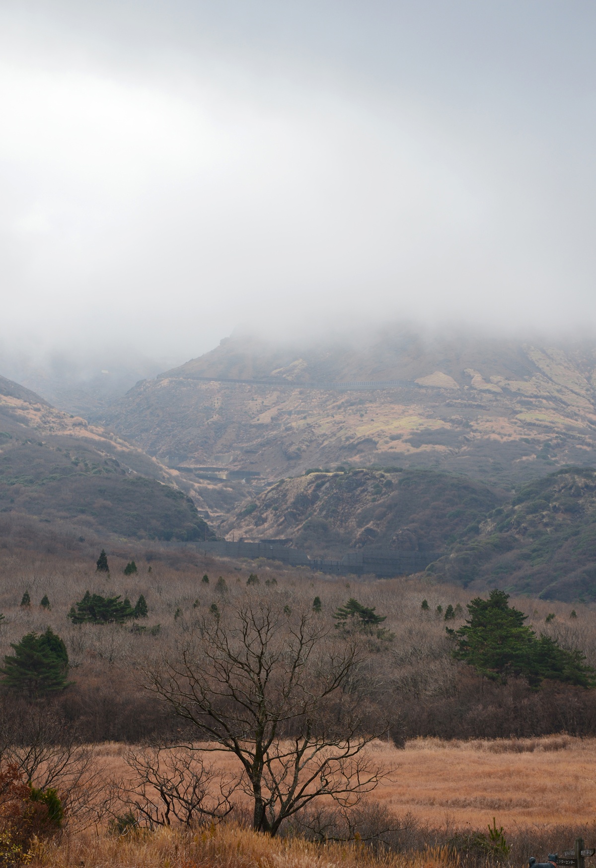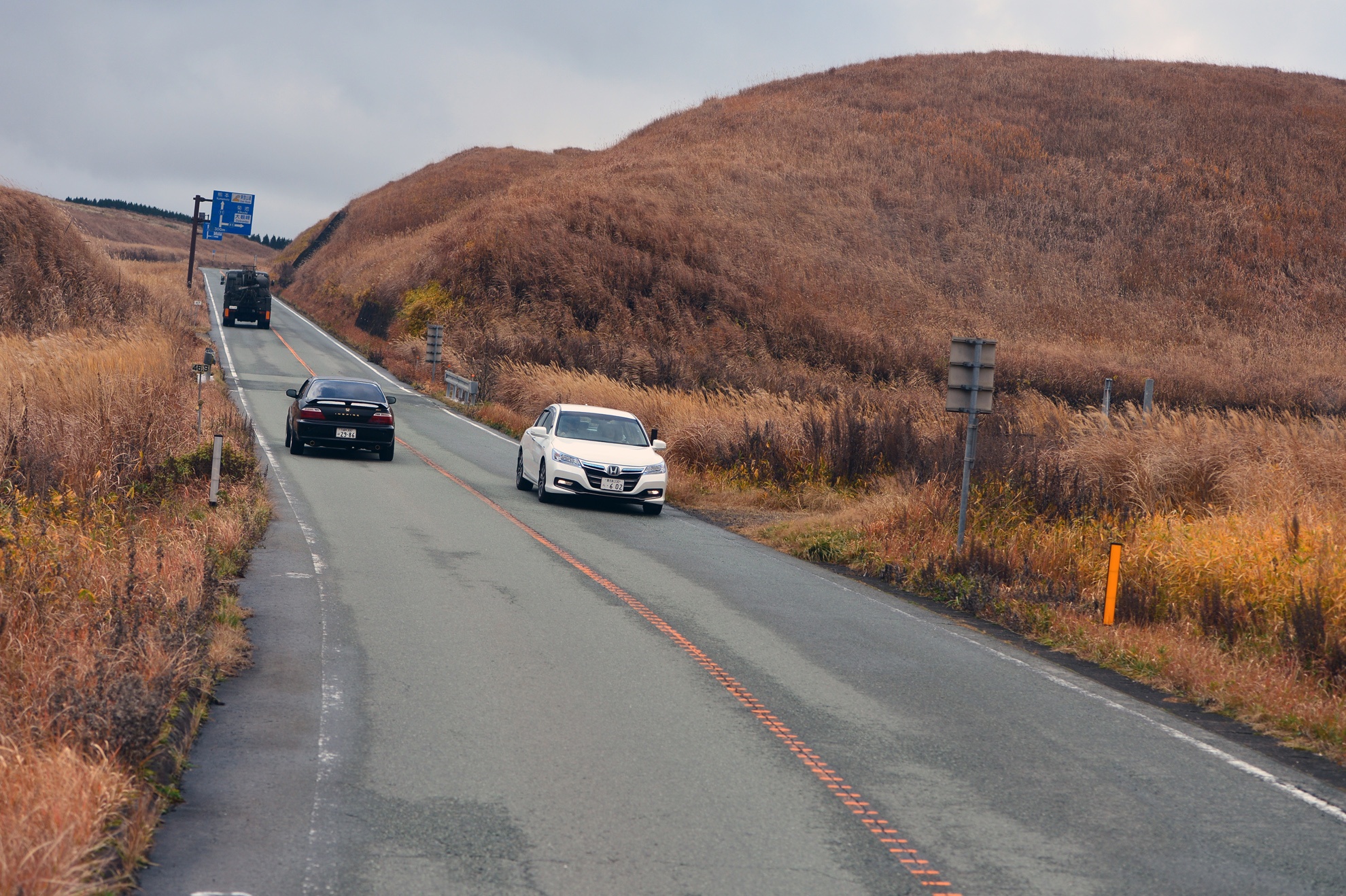 | Những ngọn núi vàng rực trên con đường từ Oita về Kumamoto. |