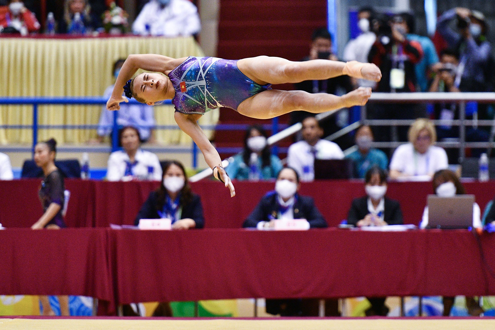 Tại nội dung thể dục tự do, nữ VĐV Việt Nam Phạm Như Phương thực hiện khá thành công bài thi của mình. Bức tường lớn khó vượt qua của cô là Rachel Yeoh Li Wen. Ảnh: Hoàng Hà.