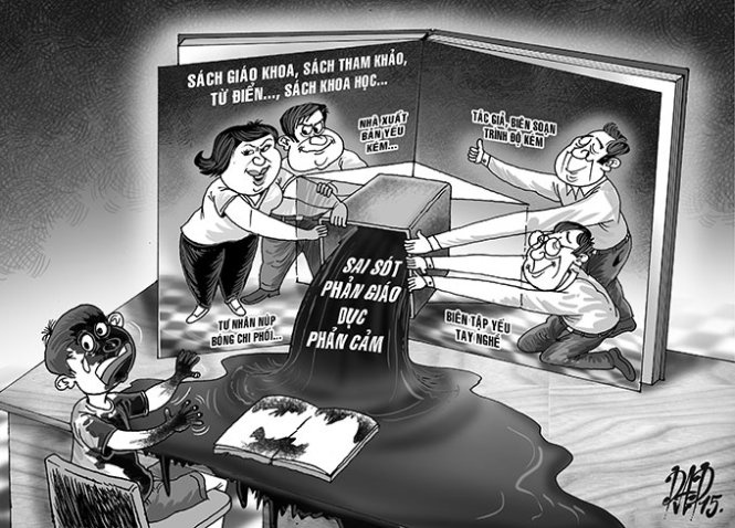 Ðó là các loại sách về giáo dục lịch sử, đạo đức, cung cấp kiến thức khoa học, từ điển... có chất lượng kém, biên soạn cẩu thả, nội dung nhảm nhí, phản cảm, kiến thức và ngôn từ đã lạc hậu, thậm chí sai - kiểu như hình vẽ cổng trường em treo cờ Trung Quốc, bài toán rợn người lấy ví dụ phép trừ bằng hình ảnh cắt cụt hai ngón tay, rồi từ điển Vũ Chất với các mục từ định nghĩa sai lệch, sách luật in hình diễn viên Công Lý trên bìa...