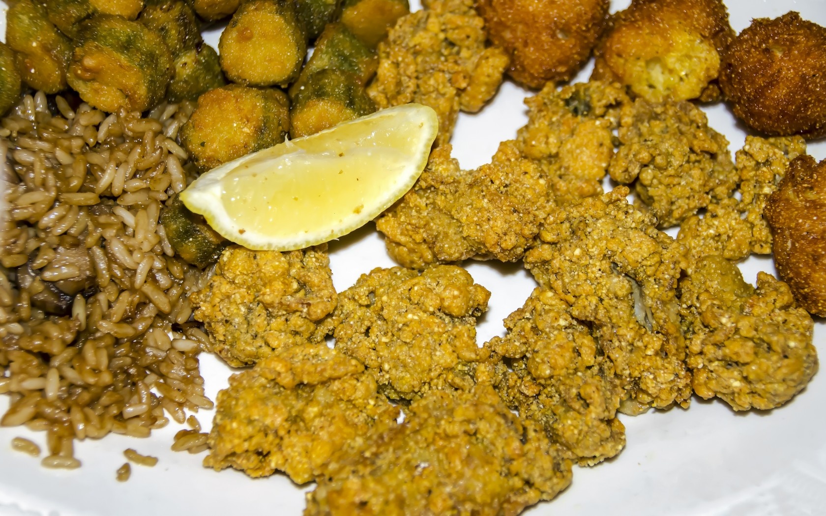 Bánh Hushpuppies, Virginia: Món bánh làm từ bột ngô và sữa bơ rán giòn này thường được ăn cùng gà rán hoặc cá basa. Món này xuất hiện từ thời nội chiến Mỹ. |