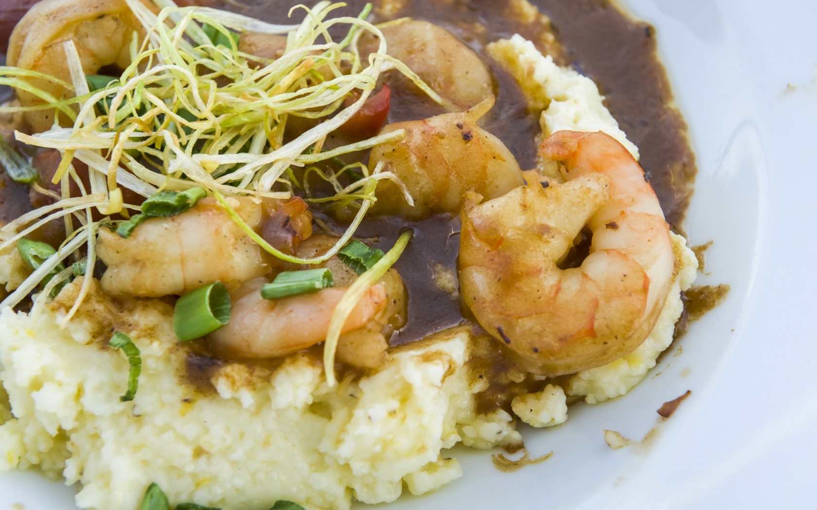Tôm và bột ngô, Nam Carolina: Đây được coi là món ăn sáng truyền thống của vùng Nam Carolina. Bột ngô thường được nấu với sữa, thêm bơ và sau đó cho tôm lên trên. |
