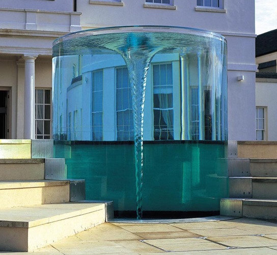 Do William Pye thiết kế, đài phun nước Charybdis Vortex ở Anh là tác phẩm điêu khắc nước xoáy lớn nhất của ông cho đến nay. Đài phun nước hoạt động theo nguyên tắc dùng bơm áp lực phun nước vào các bình trụ acrylic. |