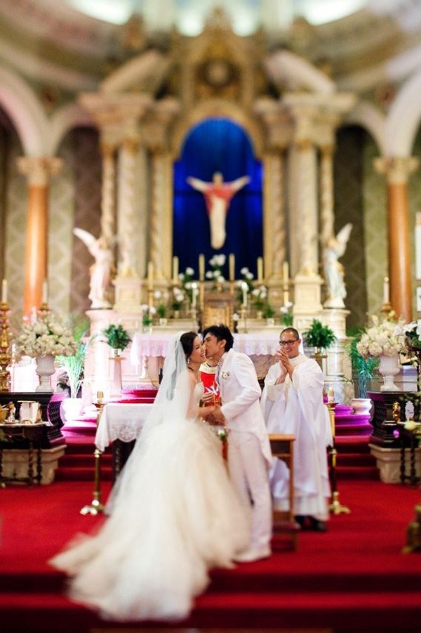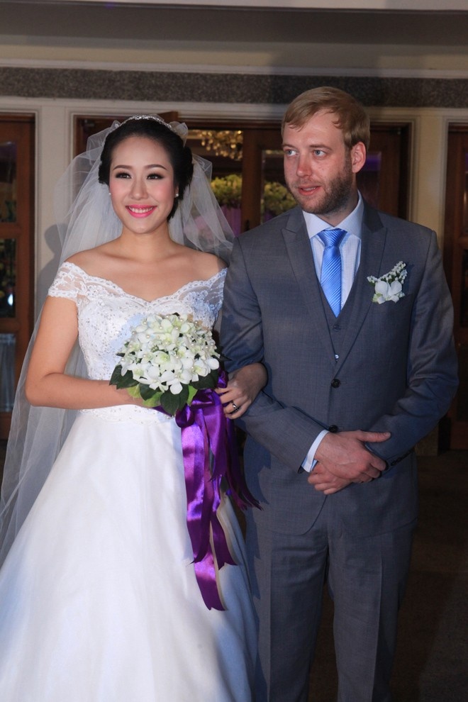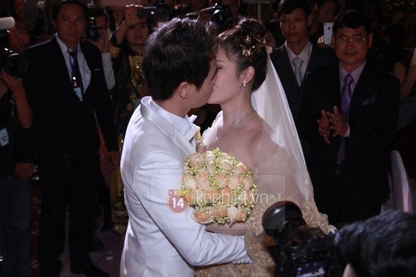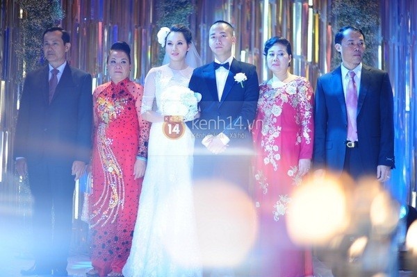 | Hầu như trước khi đám cưới diễn ra mọi thứ đều được giữ bí mật và không mấy người biết. Thậm chí, tiệc cưới cũng tổ chức khá lặng lẽ tại một nhà hàng ở Hồ Tây chỉ với sự tham gia của hai bên gia đình và bạn bè thân thiết. Chỉ đến khi những hình ảnh cô dâu - chú rể được một vài người bạn chia sẻ lên Facebook cá nhân thì người hâm mộ và báo giới mới tá hỏa. Và ngay lập tức, trên các trang báo mạng lần lượt đưa. |