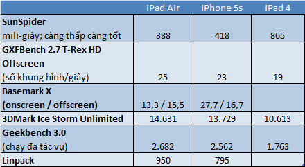 | iPad Air "vô đối" trong các bài kiểm tra hiệu suất. |
