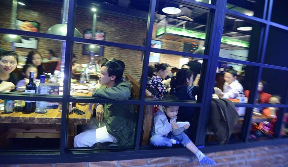 Một số nhà hàng có cảnh khách xếp hàng dài. Ảnh: Lê Hiếu. |