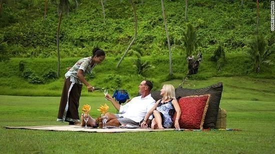 | Dùng bữa tiệc dã ngoại kiểu "bắt cóc", Resort Namale (Vanua Levu, Fiji): Các đôi uyên ương khi đến đây đều được thưởng thức một bữa tiệc dã ngoại không có kế hoạch trước. |
