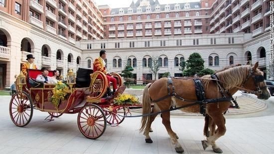 Trải nghiệm cảm giác làm quý tộc khi ngồi xe ngựa hoàng gia, khách sạn The Ritz - Carlton (Thiên Tân, Trung Quốc): Khách sạn này có tiếng về tổ chức hôn lễ, trong đó cô dâu chú rể có thể trải nghiệm cảm giác làm quý tộc khi ngồi trong xe ngựa hoàng gia.