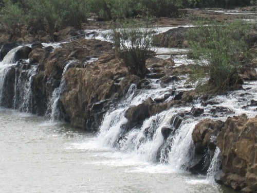 Thác Mai không có những dòng chảy ào ạt từ trên cao mà uốn lượn mềm mại qua những vách đá thấp. Ảnh: Ttxtdulichdongnai.