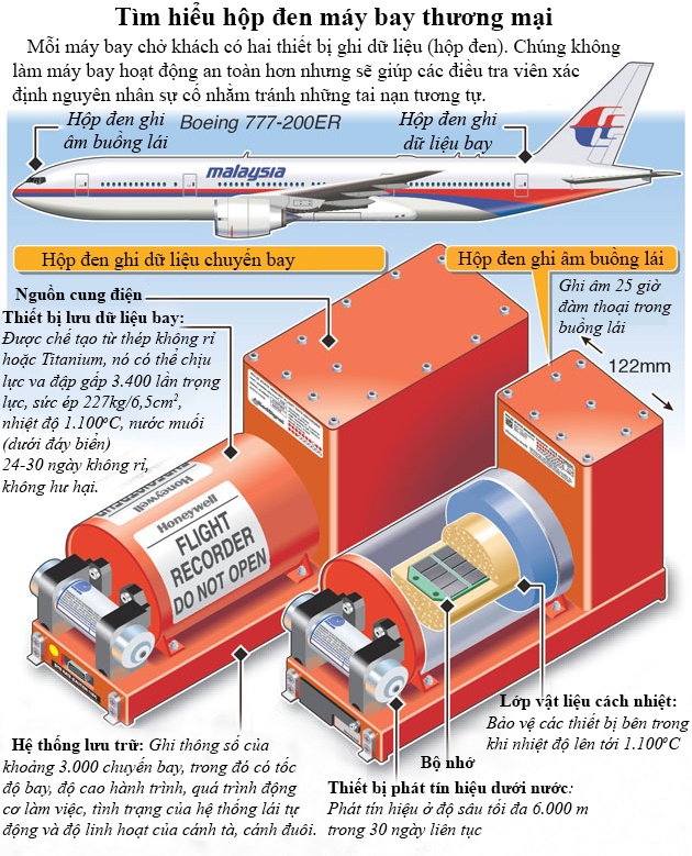 | Thông số kỹ thuật hộp đen máy bay chở khách. Đồ họa: Hồng Duy. |