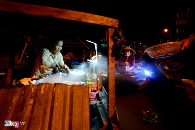 Đến đây, ngoài cảm nhận nét đặc trưng của loại hình chợ hấp dẫn nhất thế giới, bạn đừng bỏ qua cơ hội mua sản vật giá rẻ hay thưởng thức những món quà vặt được bày bán trên tàu. Ảnh: Nguyễn Quang. |