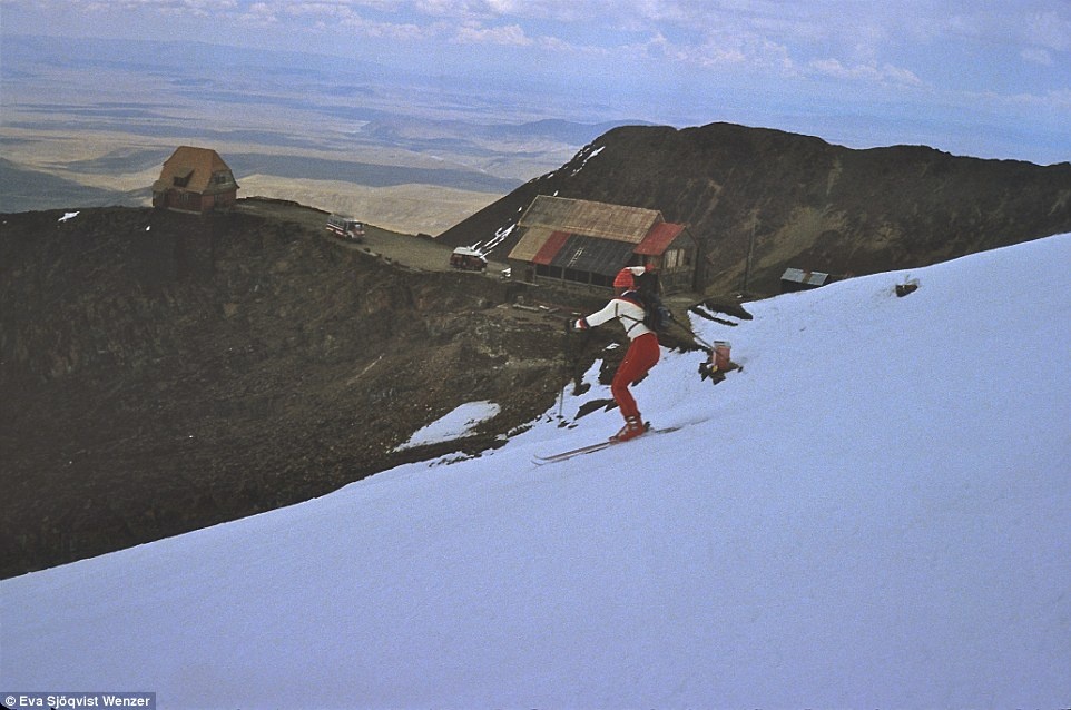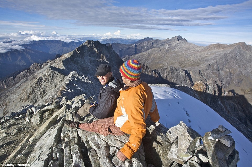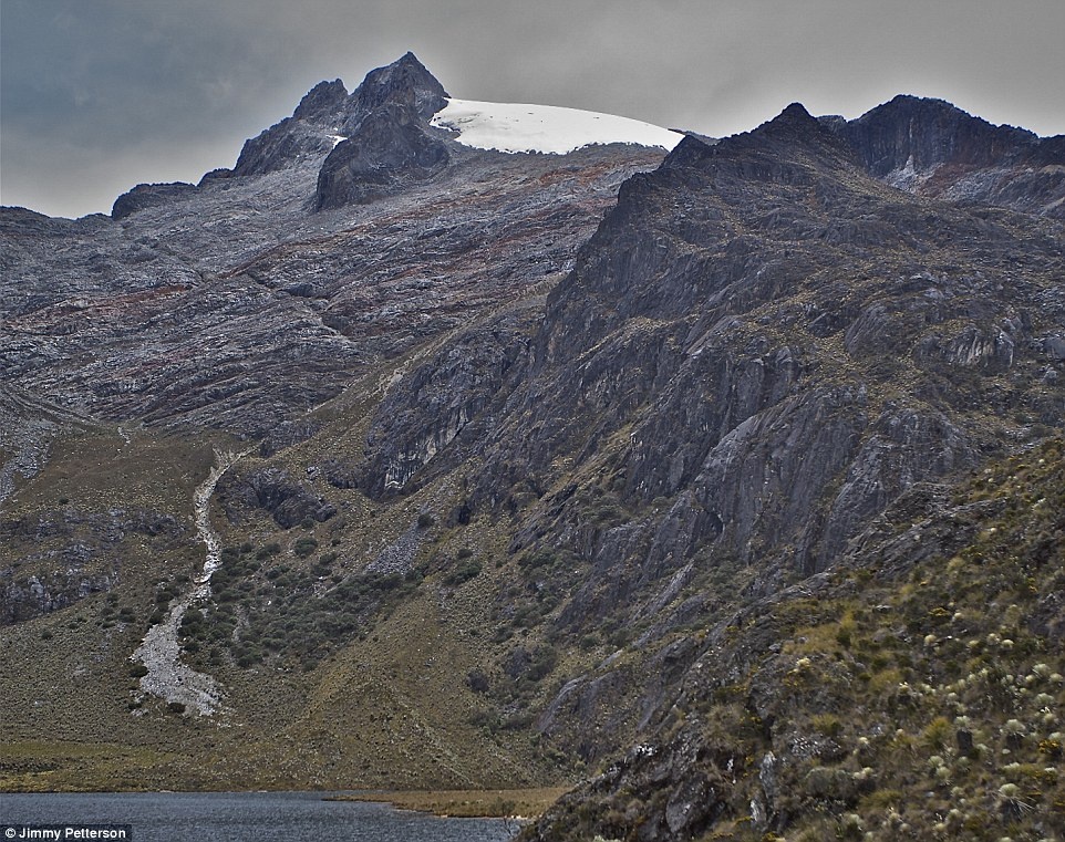 Đến năm 1980, du khách chỉ có thể trượt tuyết vào mùa đông. Ngày nay, tuyết hiếm khi rơi tới một ngày ở Pico Espejo, và việc trượt tuyết đã trở thành quá khứ. Trong ảnh, hai người leo núi đang chiêm ngưỡng khung cảnh. |