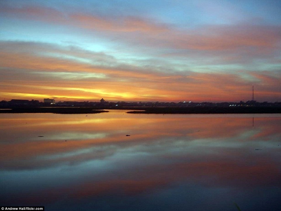 Hồ Boeung Kak, Campuchia: Boeung Kak từng là vùng đầm lầy đô thị lớn và quan trọng nhất Campuchia. Du khách thường tới đây ngắm hoàng hôn, trong lúc người dân đánh cá kiếm ăn (ảnh chụp năm 2006). |
