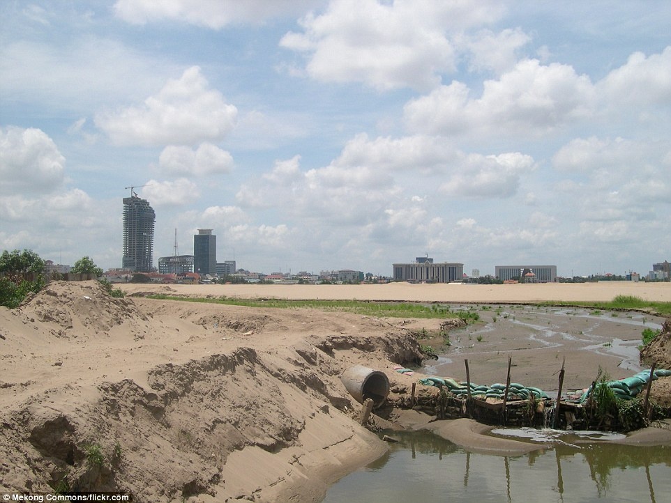Tháng 2/2007, tập đoàn Shukaku đã được chính phủ cho phép sử dụng và phát triển khu vực hồ trong 99 năm, với giá 79 triệu USD. Đến năm 2010, tập đoàn này đã lấp 90% hồ bằng cát từ sông Mekong. Bức ảnh chụp năm 2014 cho thấy hồ nước xinh đẹp này chỉ còn như một vũng bùn. |