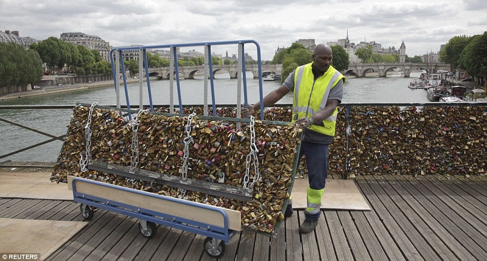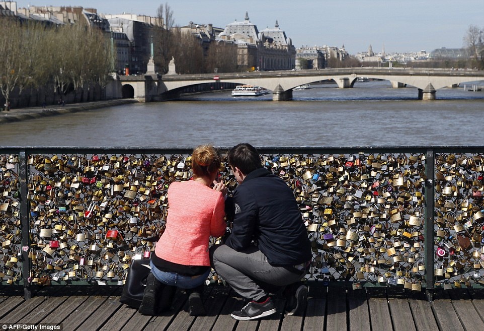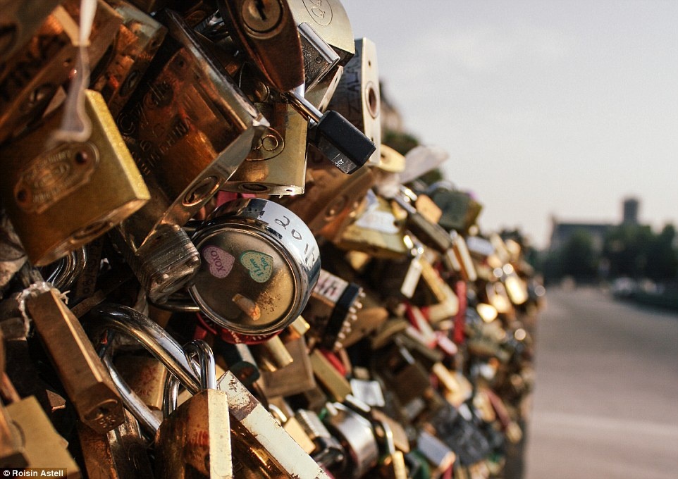 Trào lưu này bắt đầu từ năm 2008, và đến năm 2015 đã có khoảng 1 triệu ổ khóa trên cây cầu trên dòng sông Seine. Trọng lượng của chúng lên tới 45 tấn, đè nặng lên cầu. |