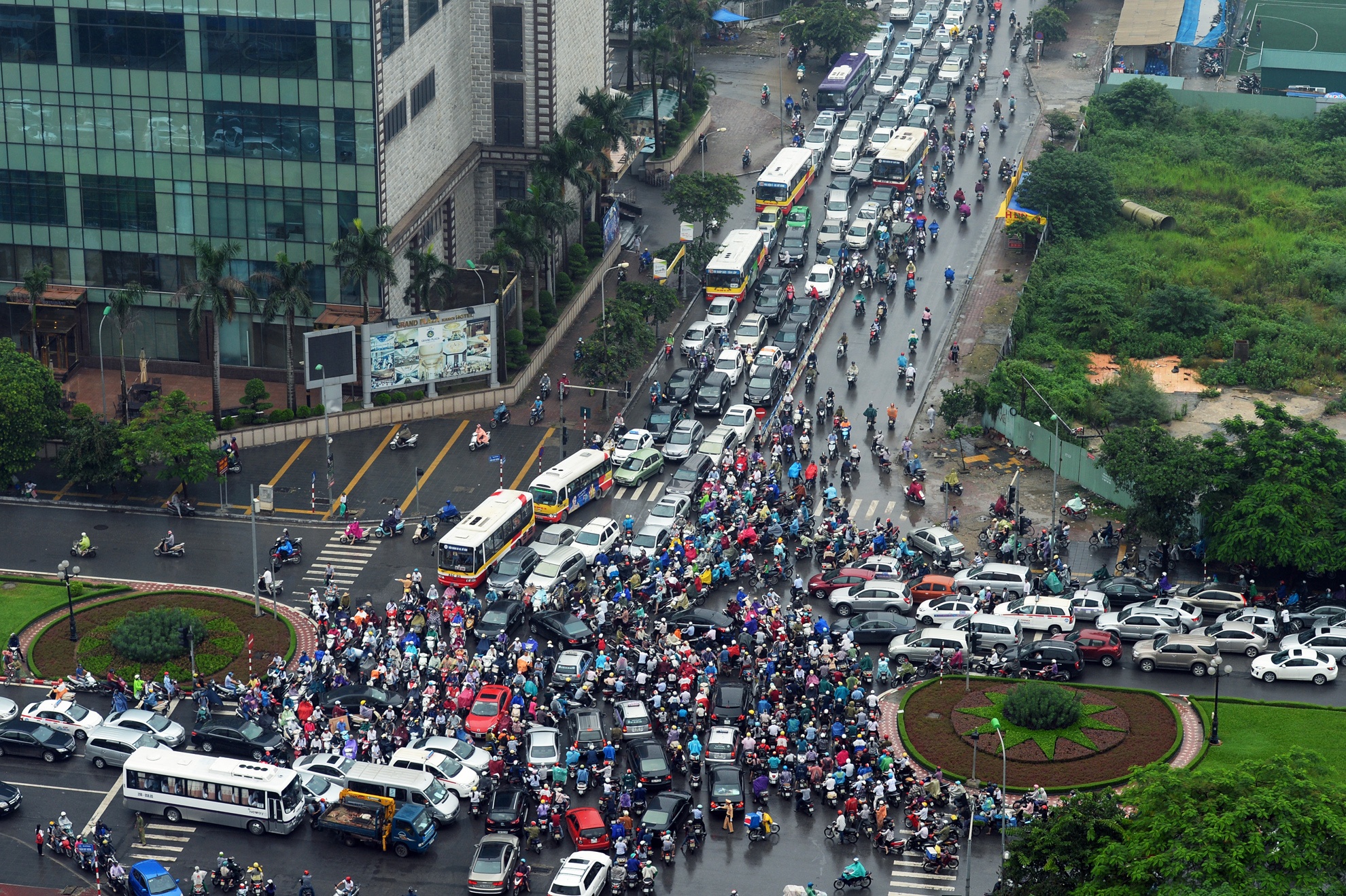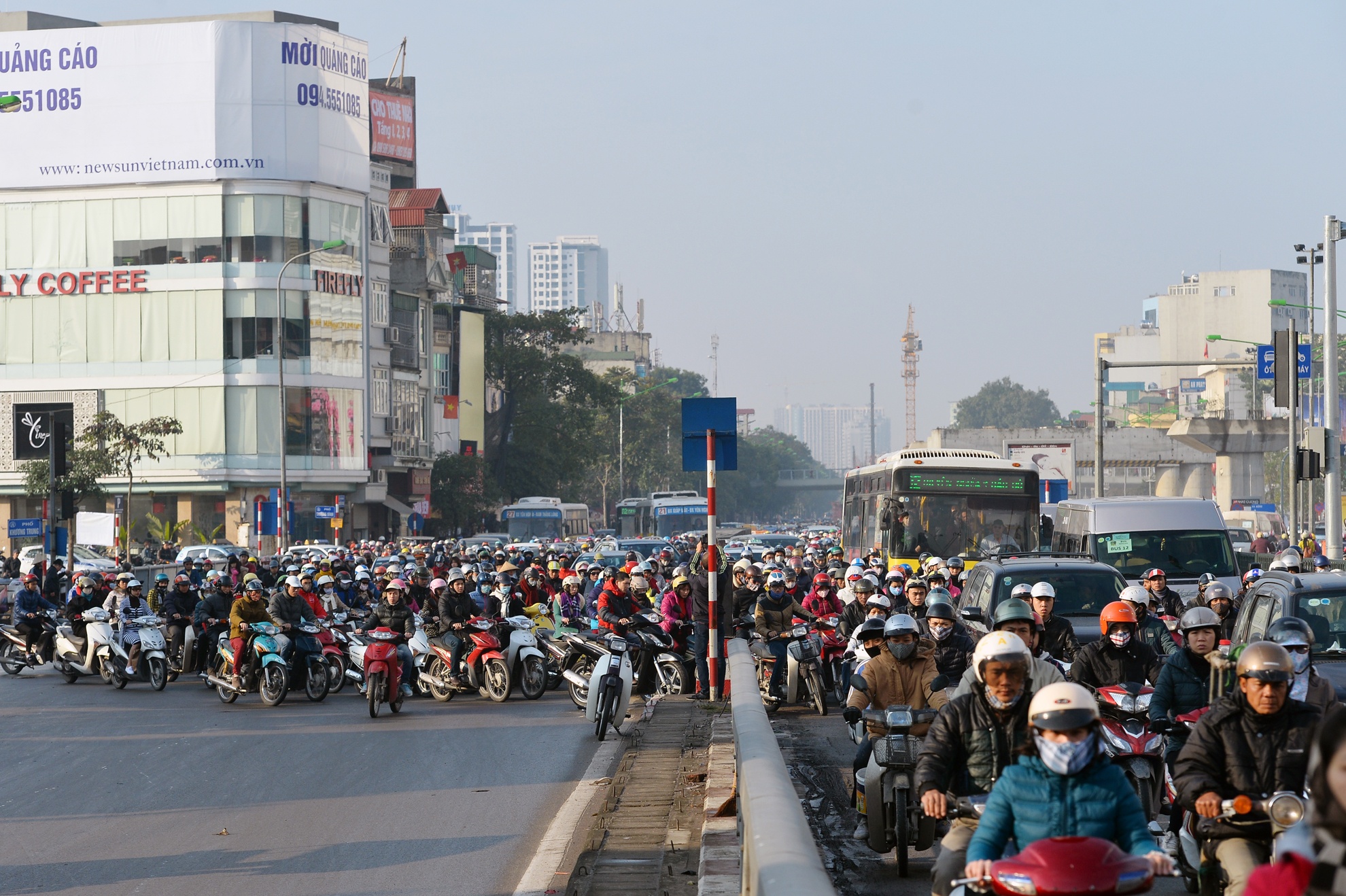 Ùn ứ kéo dài vào mỗi buổi sáng là tuyến Tố Hữu, đoạn từ ngã tư Trung Văn tới nơi giao cắt với phố Thanh Bình (quận Hà Đông). Do mật độ dân di cư nhiều về phía Tây Nam thủ đô, hàng loạt khu đô thị mới mọc lên tại các quận Hà Đông, Nam Từ Liêm đã khiến cho khu vực này có một số lượng lớn người dân ùn ùn đến hoặc rời thành phố vào giờ cao điểm. Ảnh: Hoàng Hà - Duy Hiếu.