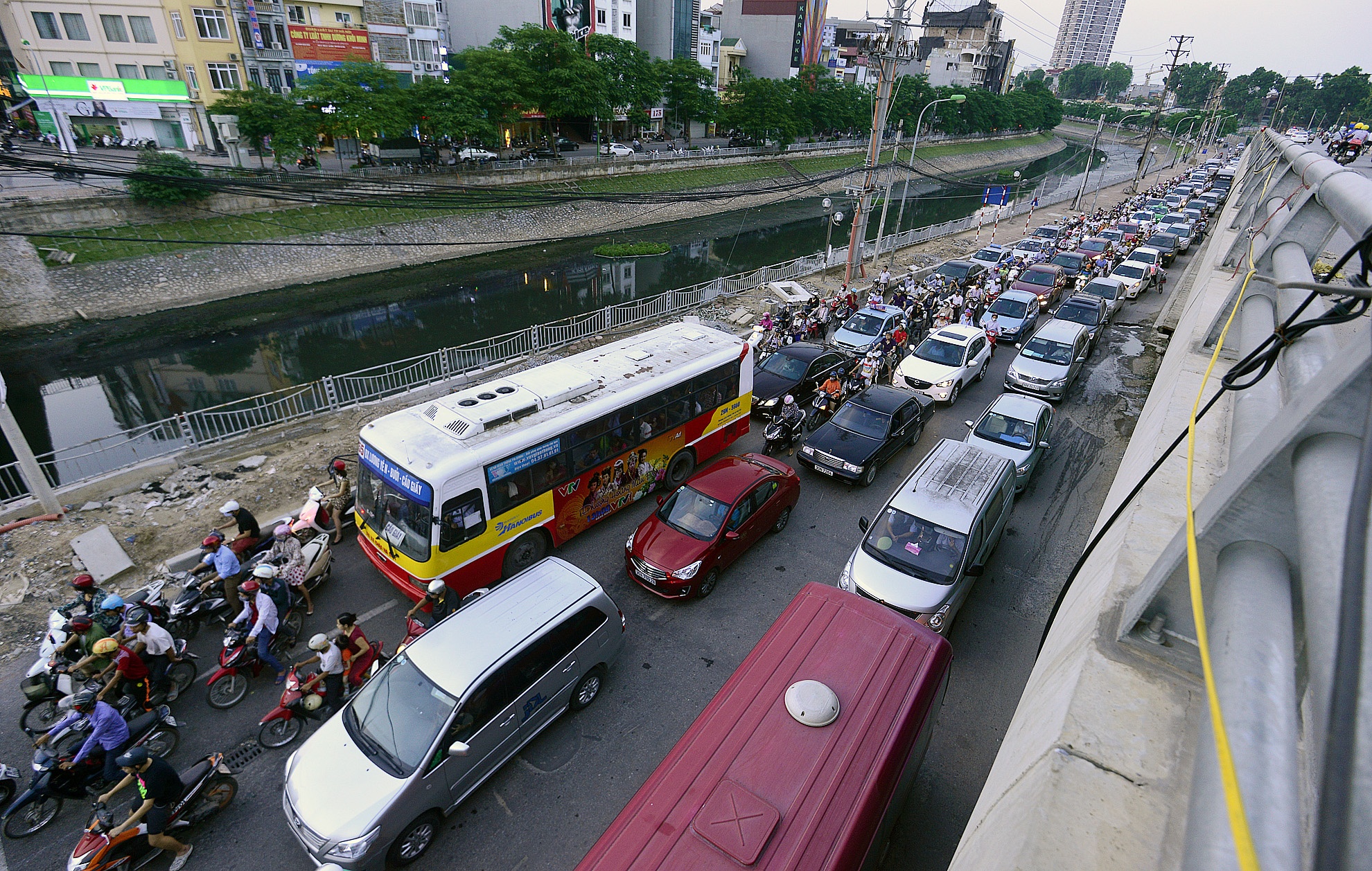 Dọc toàn tuyến từ cầu vượt Ngã Tư Sở đến khu vực Trần Phú (quận Hà Đông), các phương tiện luôn gặp khó khăn bất kể thời gian nào trong ngày. Ảnh: Hoàng Hà.