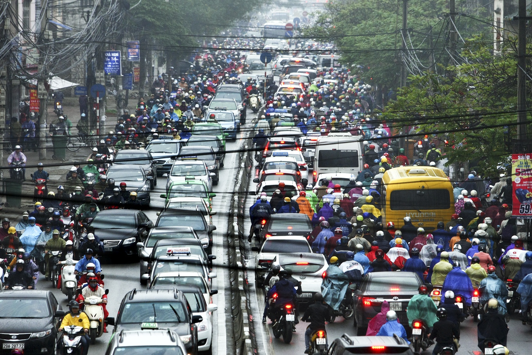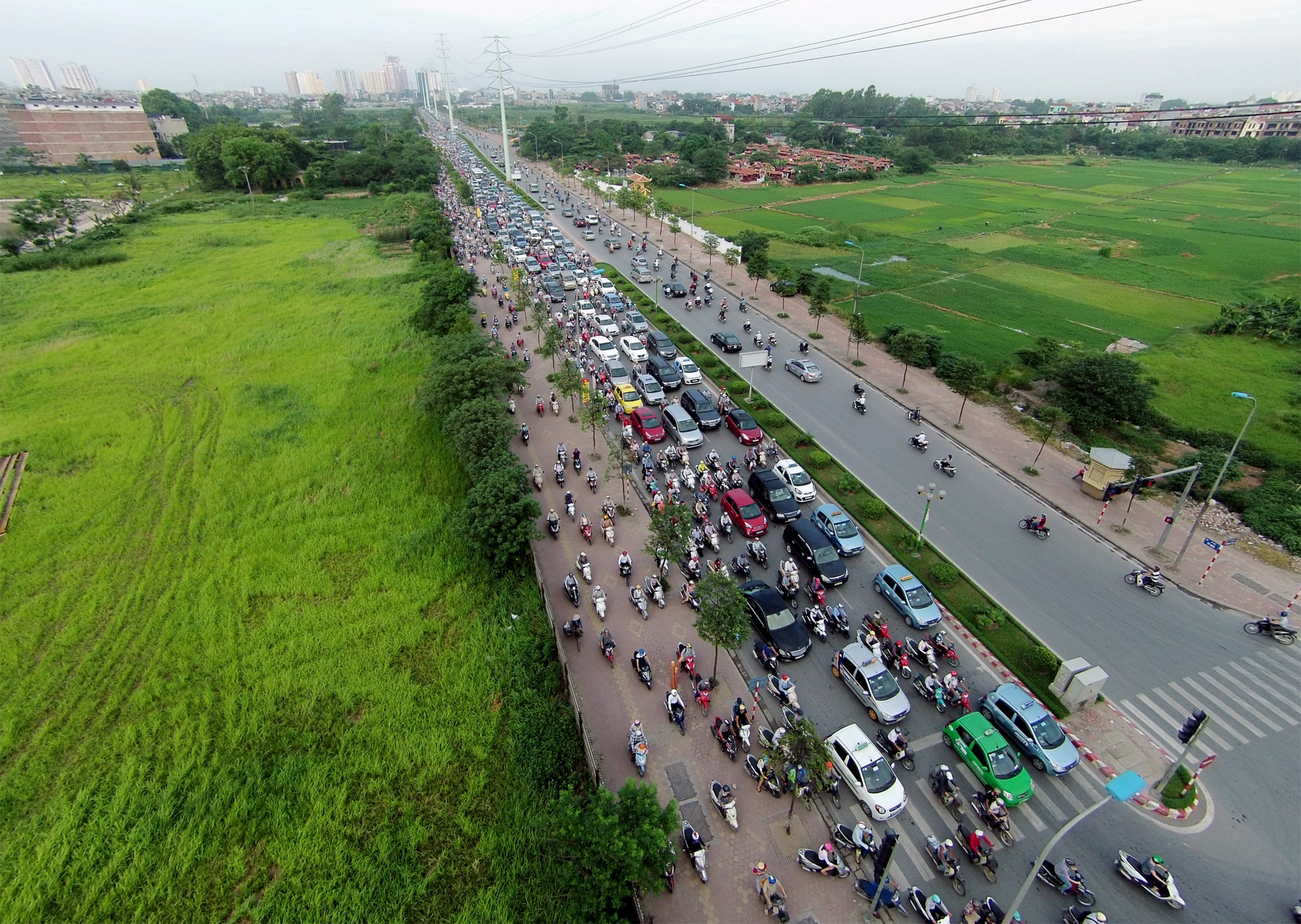 Các con đường nhỏ như Trung Văn nay cũng cõng một lưu lượng phương tiện dày đặc. Ảnh: Lê Hiếu.