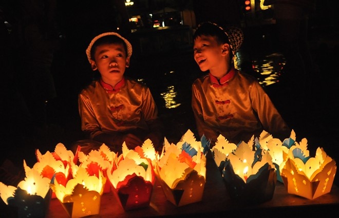 Lễ hội hoa đăng Hội An: Vào đêm rằm Trung Thu, tất cả các con đường tại phố cổ đều có sự hiện diện của những bông hoa được cắt theo hình lục giác đều, có một đèn cầy ở trong, đó là hoa đăng. Hãy chọn cho mình một bông để gửi ước nguyện của bạn đến bạn bè, người thân. Ảnh: Tuấn Nguyễn.