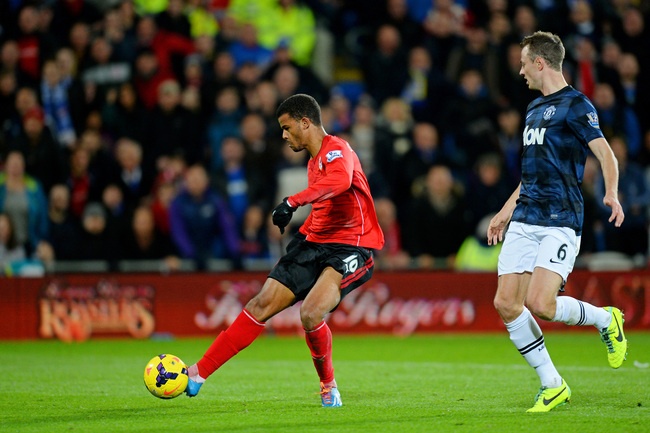 | Sau khi sút tung lưới thủ môn De Gea, tiền đạo Fraizer Campbell đã có 2 lần ghi bàn trong những trận gặp đội bóng cũ MU. Bàn thắng gỡ hòa 1-1 của Cardiff ở phút 33 cho thấy tốc độ và khả năng dứt điểm rất tốt của Campbell. Mùa giải năm nay, tiền đạo Cardiff đã ghi bàn trong cả 2 trận gặp các đội bóng thành Manchester. |