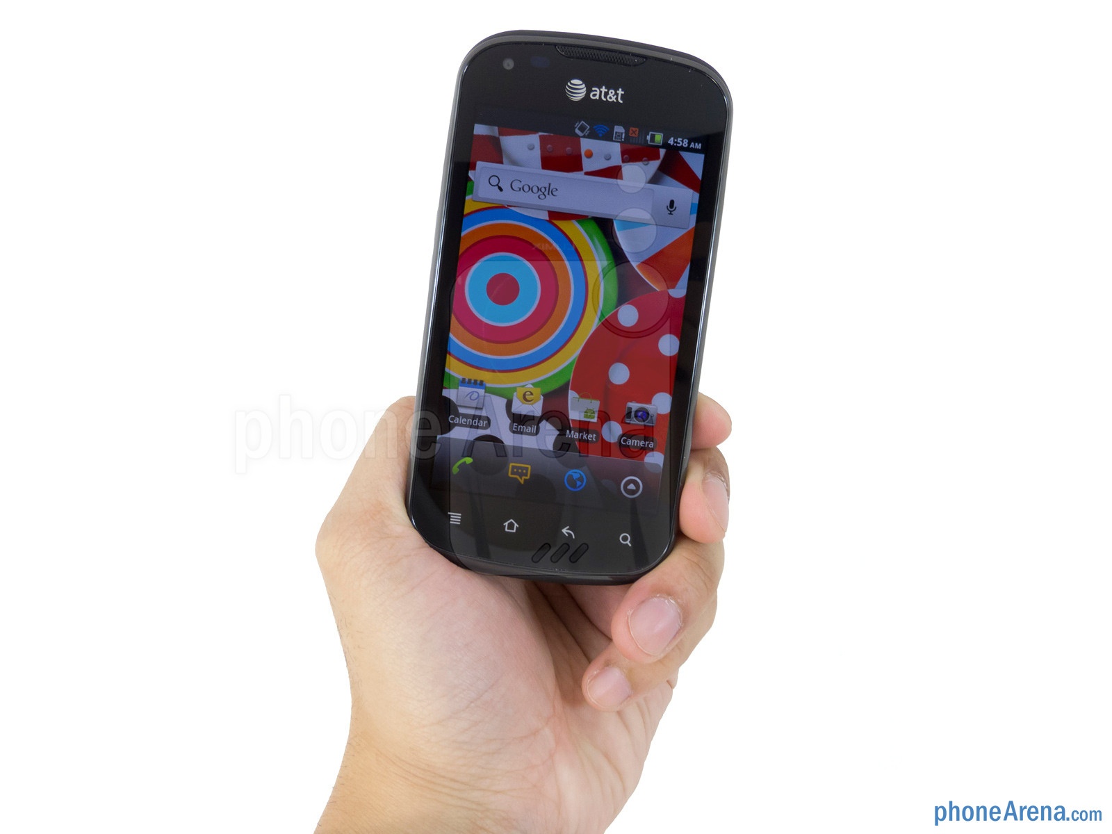 Thông số kỹ thuật: Android 2.3, kích thước 114,7 x 78 x 11,3 mm, nặng 132 g, màn hình 4 inch 600 x 800 pixel, camera 5 MP, chip đơn, pin 1.650 mAh.