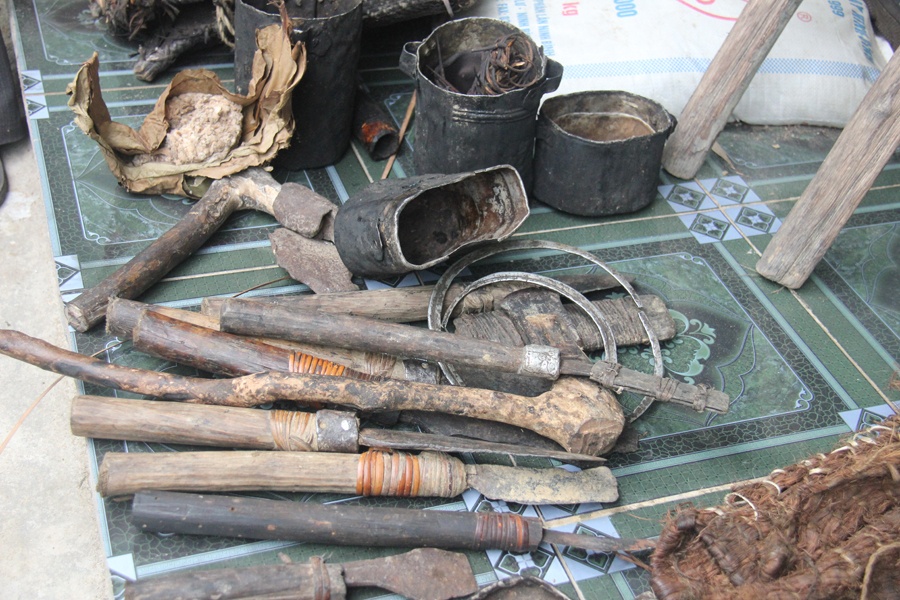 | Những dụng cụ cha con "người rừng" tự chế để sản xuất và sinh hoạt. |