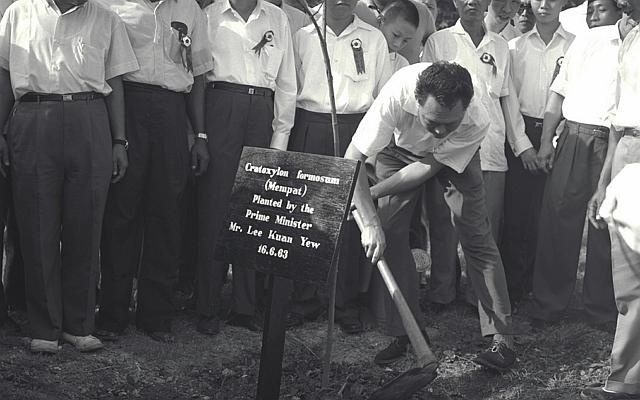 | Ông Lý Quang Diệu trồng cây năm 1963. Ảnh: Straitstimes |