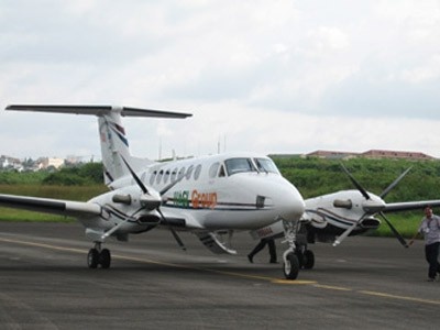 Chiều 1/10 chiếc máy bay tư nhân Beechcraft King Air 350 đầu tiên ở Việt Nam của bầu Đức, Chủ tịch CLB Hoàng Anh Gia Lai đã chính thức được phép lưu hành tại Việt Nam, mở đầu bằng chặng TP.HCM đi TP.Pleiku. Chiếc máy bay này có giá trị lên tới hơn 7 triệu USD. Ảnh: Saigonnews.