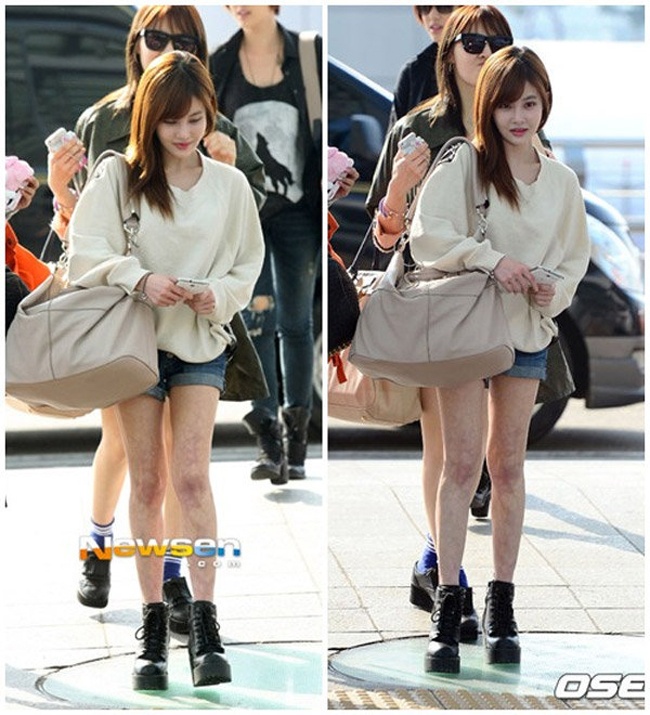 Nhiều người không khỏi rùng mình với đôi chân gày guộc và nổi gân xanh lét của Boram (nhóm T-Ara). |