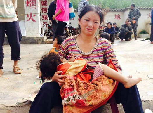 Những người thoát chết ở thị xã Long Tuyền, huyện Lỗ Điện, tỉnh Vân Nam. Hàng chục ngàn người lâm vào cảnh màn trời chiếu đất vì thảm họa.