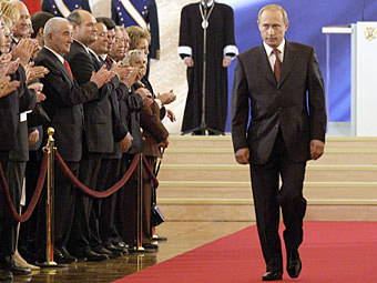 Giành chiến thắng trong cuộc bầu cử tổng thống nhiệm kỳ hai ngày 14/3/2004, Vladimir Putin tiếp tục chèo lái nước Nga tới năm 2008. Do hiến pháp quy định một cá nhân chỉ được đảm trách tối đa 2 nhiệm kỳ tổng thống liên tiếp, Vladimir Putin không tranh cử vào năm 2008. Ảnh: kremlin.ru. |