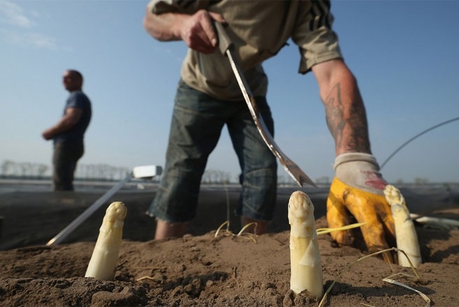 | Công nhân nhập cư từ Ba Lan đang thu hoạch măng tây ở Đức hồi tháng 4 năm nay. Theo dự báo của WB, lượng kiều hối gửi về các quốc gia đang phát triển ở Đông Âu và Trung Á sẽ tăng 11%, đạt mức 42,6 tỷ USD trong năm nay. |