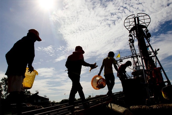 | Công nhân nhập cư từ Myanmar trên một tàu cá ở phía Tây thủ đô Bangkok của Thái Lan. Trong bối cảnh các nền kinh tế thu nhập thấp ở khu vực châu Á phát triển nhanh chóng, người lao động của các nước này ở nước ngoài bắt đầu quay trở về nhà. Đây được xem là một mối lo ngại với các quốc gia tiếp nhận lao động nhập cư như Thái Lan. |