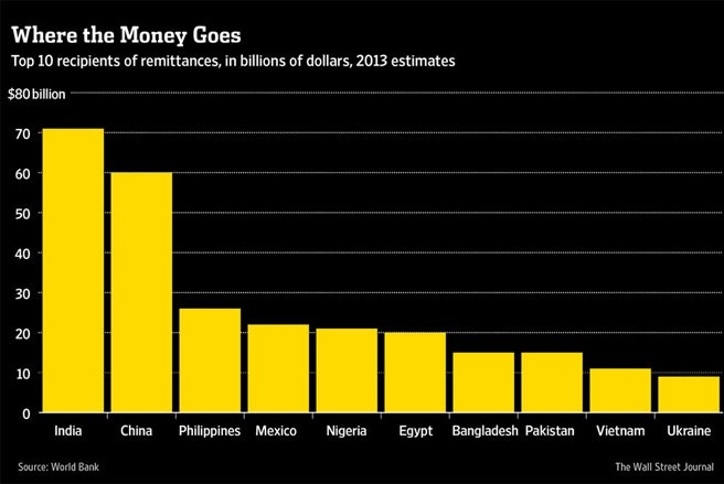 | 10 nước nhận nhiều kiều hối nhất thế giới năm nay theo dự báo của WB. Việt Nam đứng ở vị trí thứ 9. |