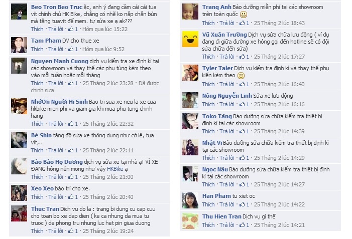 | Liệu có phải HKbike ý định triển khai một dịch vụ chăm sóc khách hàng theo kiểu mới? |