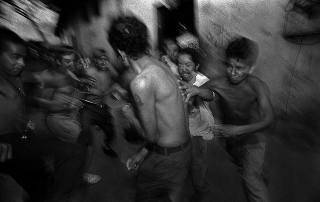 | Bọn trẻ lôi kéo một cậu bé 15 tuổi khác vào băng đảng Mara Salvatrucha của chúng tại San Salvador, El Salvador năm 1993. Ảnh: Donna De Cesare. |