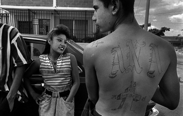 | Một thiếu niên xã hội đen xăm hình trên lưng tại Apopa, El Salvador năm 1995. Ảnh: Donna De Cesare. |