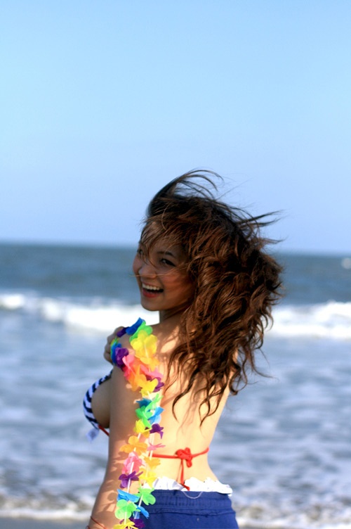 | Thủy Top luôn biết khai thác tối đa vẻ gợi cảm của vòng 1. |
