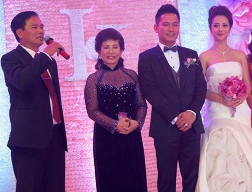 | Bà Trương Thị Thanh Thanh trong đám cưới của con trai cùng hoa hậu châu Á tại Mỹ Jennifer Phạm. |