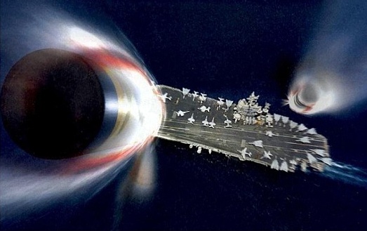 | Mô phỏng tàu sân bay Mỹ bị vũ khí Trung Quốc tấn công. Ảnh: Blogspot |