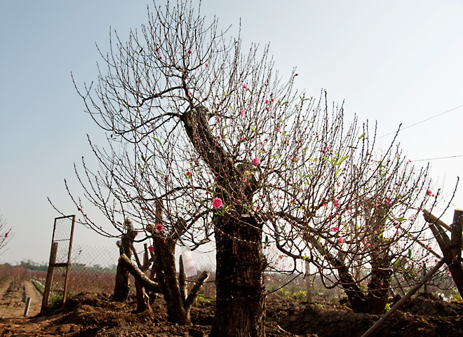 | Trong ảnh là một gốc đào thân luỗng, được đánh giá là một trong những cây khủng nhất của vườn đào Nhật Tân, với giá trên 50 triệu đồng. |