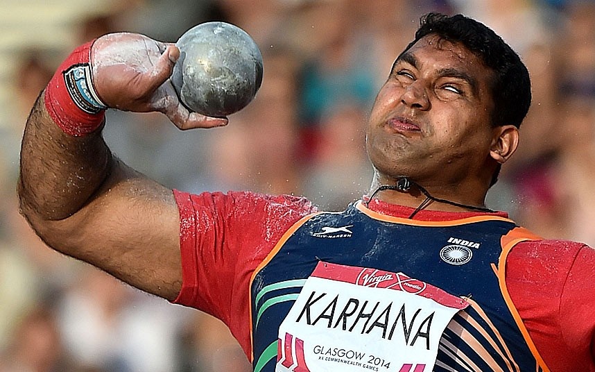 | Mắt của VĐV Om Parkash Singh Karhana (Ấn Độ) chỉ còn toàn lòng trắng trong lúc thực hiện nội dung ném tạ. |