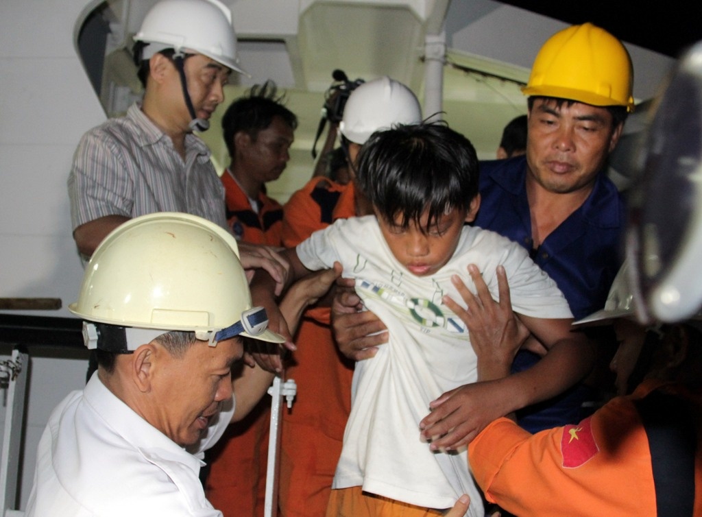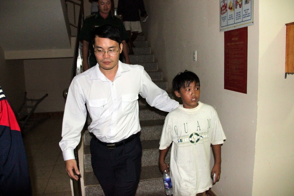 | Em Nguyễn Văn Bé, 13 tuổi, ngư dân nhỏ tuổi nhất trên con tàu gặp nạn may mắn được anh Nguyễn Văn Hồng cứu sống trong cơn hoạn nạn. |