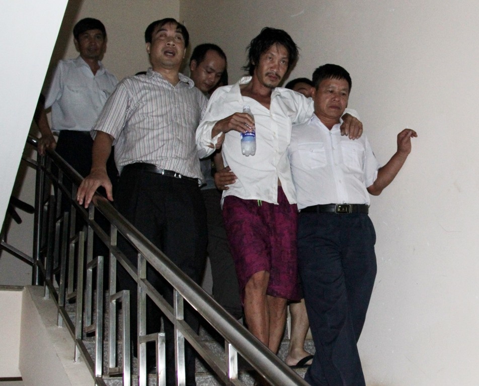 | Ngư dân Võ Văn Nhiệm cũng được dìu đi. |