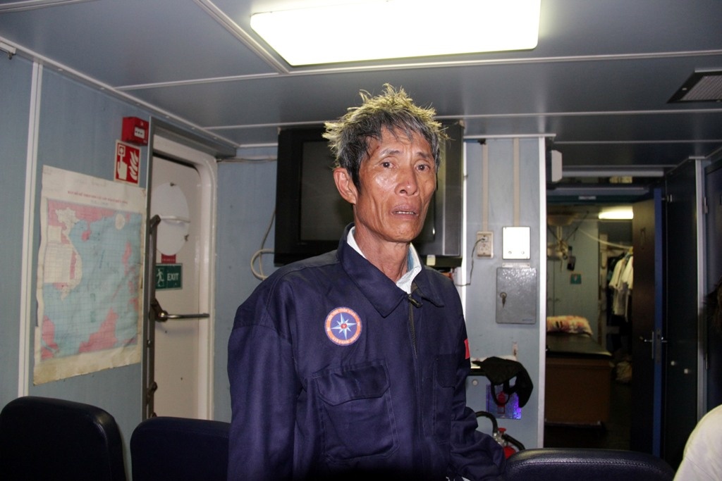 | Ông Võ Văn Nhiệm (61 tuổi), người lớn tuổi nhất trong các ngư dân được đưa vào bờ rạng sáng 17/9. |