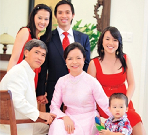 | Bà Mai Thanh và gia đình. Nhất Hạnh là người ngoài cùng bên phải. |