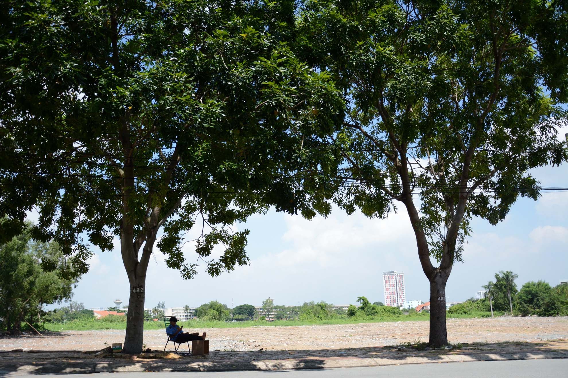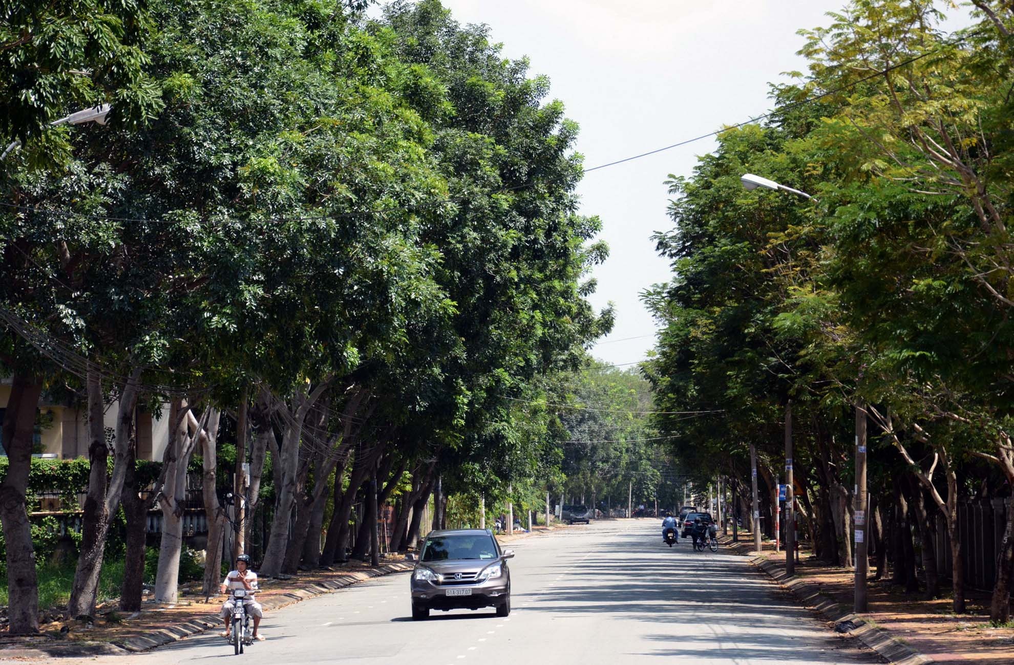 Trong khi đó, khu quản lý giao thông đô thị số 2, TP.HCM mới cho biết, có kế hoạch đốn bỏ khoảng 215 cây xanh trên dọc đường Nguyễn Văn Hưởng, phường Thảo Điền (quận 2) trong quá trình xây dựng cơ sở hạ tầng khu vực này. Trong ảnh là hai bên đường Nguyễn Văn Hưởng với các loại cây xanh khác nhau như sọ khỉ, điệp vàng, bò cạp nước.