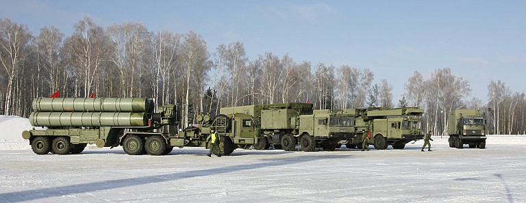 | Hệ thống phòng không S-400 với đầy đủ các xe chiến đấu và trinh sát, đảm bảo kỹ thuật. Ảnh: Ausairpower. |